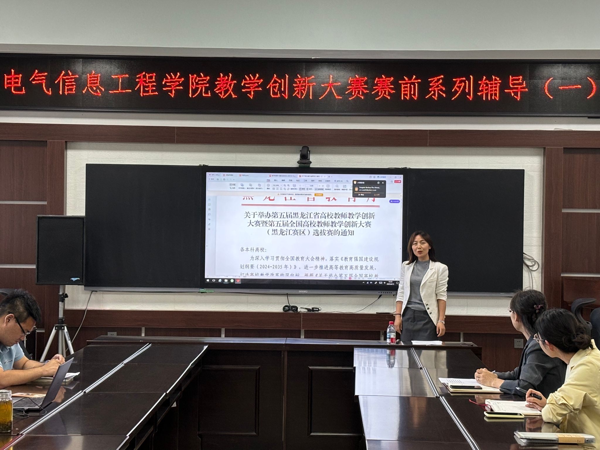 会上,徐亭亭详细解读了黑龙江省高校教师教学创新大赛文件,对参赛教师的备赛材料进行针对性指导,并结合自身参赛经验围绕课程概述、学情分析、创新举措、教学效果以及改进措施等多方面进行分享。